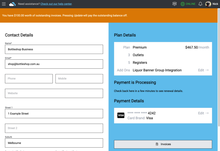 The new UI allows for the update of payment details separate to the update of plans, makes it easier to define the registers & outlets you’re using and provides additional information on features available on each plan (and why you might not be able to downgrade).